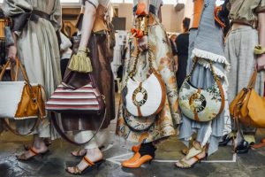 Various colors, materials, and prints were displayed by them with a pair of sandals.